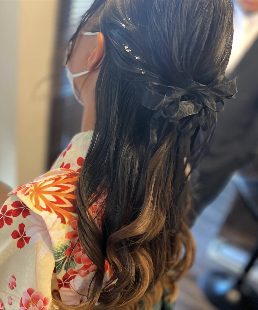 お母様と一緒に選ばれた髪型と髪飾り🎀