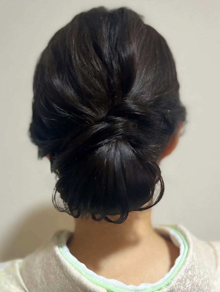 今回はお団子(シニヨン)部分も少しずつ引き出して
