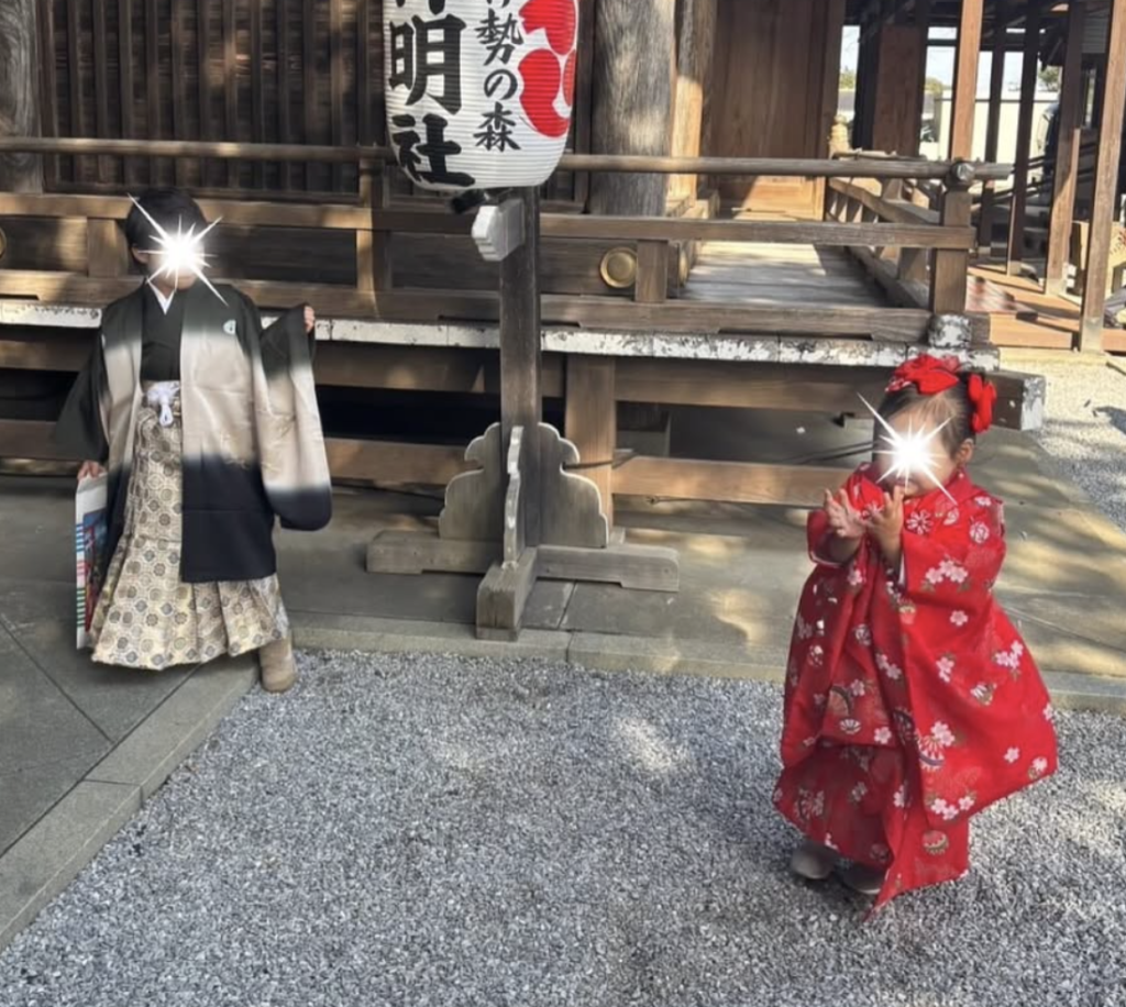 ちゃんとお参りに行けたかな…と少し気になっていたのですが、その後お母様から届いたお写真には、神社でにこにこ過ごす兄妹の姿が✨