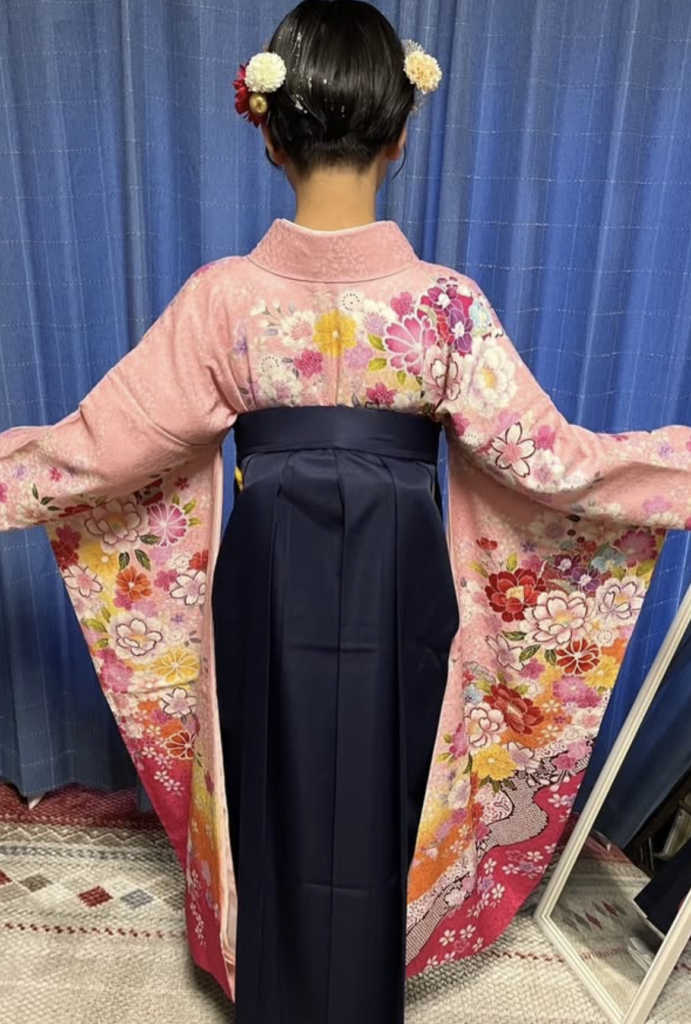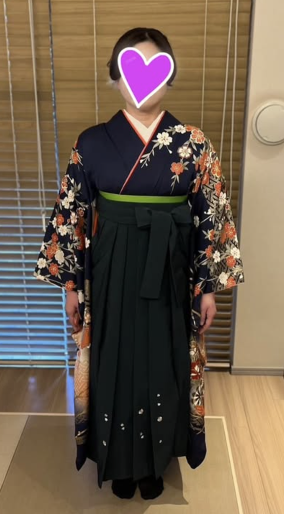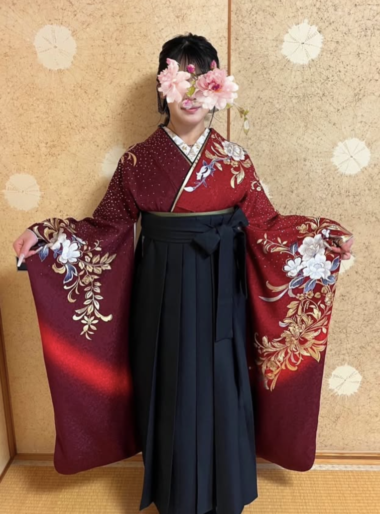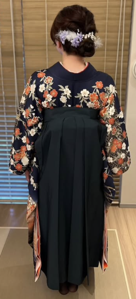 成人式でお召しになったお振袖に、今回は袴を合わせて卒業式にご出席されるとのこと。とてもステキですね〜❤️
