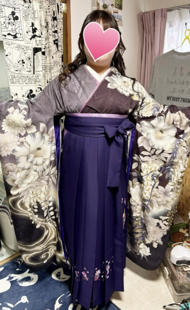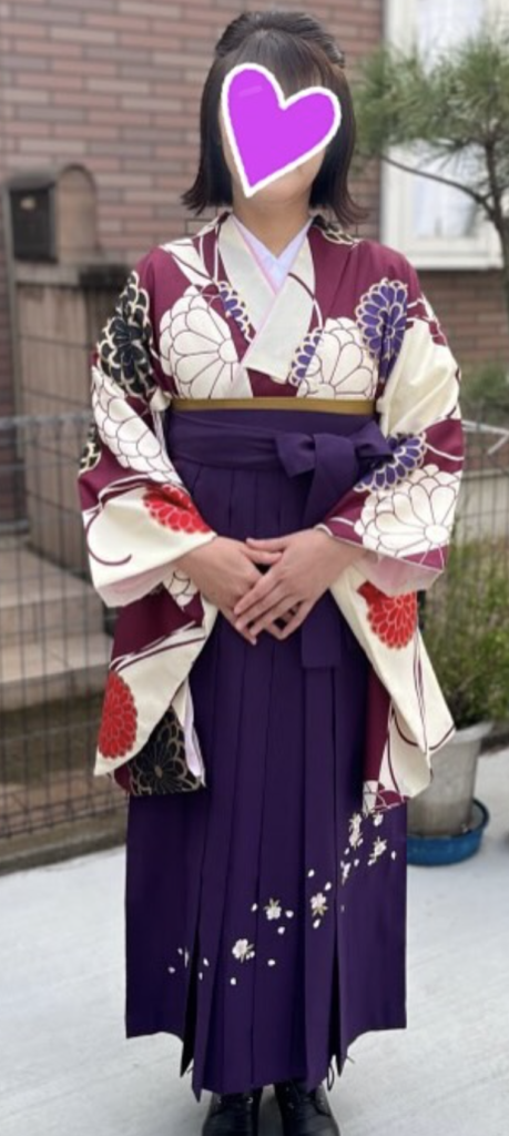 お嬢様は袴をお持ちでなかったため、私どもでレンタルさせていただきました。